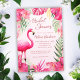 Experience the allure of a Hawaiian getaway right on your invitation and get ready to embark on a bridal shower adventure like no other with this stylish and vibrant Pink Tropical Floral Bridal Shower Invitation. Immerse your guests in the tropical charm of exotic vibes, as this invitation transports them to a destination filled with pink hibiscus blooms, lush palm leaves, and vibrant greenery. The colourful and trendy design captures the essence of a Hawaiian luau, where the iconic flamingo takes centre stage amidst the lush and radiant floral arrangements. This summer-inspired invitation sets the perfect tone for your upcoming tropical-themed bridal shower, promising a day filled with fun and laughter!