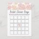 Pink tropical leaves wedding bridal Shower bingo game card. Beautiful leaves of Split Leaf Philodendron (Monstera deliciosa) or Swiss Cheese Plant and palm leaves in pink with gold outline adorn this lovely bridal bingo game card.