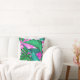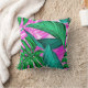 This bright tropical accent pillow features a background of pink palm leaves with different shades of green palm leaves scattered on top. Perfect for any tropical beach decor and works well with both indoor and outdoor settings!
