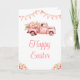 Pretty easter card with bunting and a pink truck full of easter eggs. The words can be changed to suit your own details or requirements.