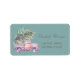 Pink truck and pine tree on green background. An elegant and sophisticated design. Customise with your name and address details.