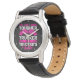 This wall clock is a powerful tribute to the strength of a truck driver's wife. Against a black background with a vivid pink rim, it features two pink semi-trucks arranged in a mirrored design, with a distressed pink stripe between them. The bold text "THE ONLY THING TOUGHER THAN A TRUCKER IS A TRUCKER'S WIFE" is prominently displayed in white and pink, making a clear and heartfelt statement about her resilience.