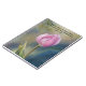 The front of this journal spiral notebook features my original photograph of a pretty pink tulip about to open in bloom and processed in a vintage watercolor style for an artsy flair. A Bible verse from Isaiah 40:8 is at the top of the image.