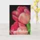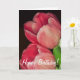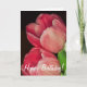 Birthday card. Pink Tulips against a dark background. Message inside reads 'Happy Birthday!! Hope it's a special day!'