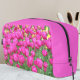 Zippered dopp kit toiletry bag that features a photo image of bright, pink Tulip blooms with matching, solid pink top and side panels. A lovely, floral design! Perfect accessory bag for your toiletries for on-the-go travel!
