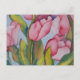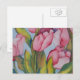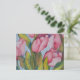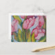 Lovely pink tulips and green leaves adorn this postcard made from an original watercolor painting.