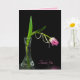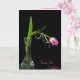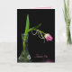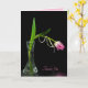 Single pink tulip in glass vase with string of pearls on black with water reflection for thank you.