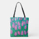 Pink Tulips Field, Spring Flowers Floral Painting Tote Bag