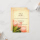 Pretty pink tulips wedding reception card; digital watercolor image of pink tulips on pale yellow and pink mottled background and edge vignette with customisable mixed typography front and back - by katz_d_zynes | Part of katzdzynes' Pink Tulips Spring Wedding collection >> https://www.zazzle.com/collections/119722397006258604