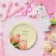 Pretty pink tulips wedding paper plates feature a digitally enhanced tulips image on coordinating pale yellow background with customisable newlyweds' names and wedding date - by katz_d_zynes | Part of katzdzynes' Pink Tulips Spring Wedding collection >> https://www.zazzle.com/collections/119722397006258604