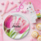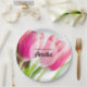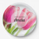 Pink Tulips with Green Leaves Photo Birthday Paper Plate