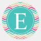 Pink Turquoise Chevron Monogram Classic Round Sticker