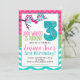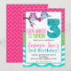 Pink Turquoise & Green Summer Owl 3rd Birthday Invitation