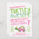 Invite your friends to come and "shellebrate" at a Turtelly Awesome Birthday Party with these adorable turtle birthday invitation for girls!