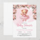 Pink tutu ballerina girl teddy bear blush roses baby shower invitation,
