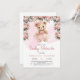 Tutu ballerina girl teddy bear dusty pink roses baby shower invitation,