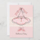 A girl's delight! An adorable pink tutu hangs from a bow with matching ballet slippers against a pink background and a pink and white check band.