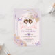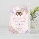 Pink TWIN Girl First Holy Communion Purple Floral Invitation