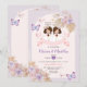 Boho Pink TWIN Girl First Holy Communion Purple Flowers Invitation