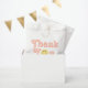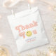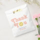 This groovy girls' 2nd birthday favour bag design captures retro 70s vibes with “thank you” in a cute pink script. Fully customisable, it includes space for a name and age. Perfect for a "Two Groovy" boho birthday, this playful, elegant design adds charm to your little one's special day.