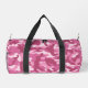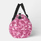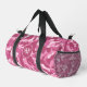 This bag features a delightful camo style pattern in tones of burgundy pink and off white. Your triple letter monogram is in white within a matching pink circle banner at the centre.