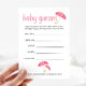 Let baby shower guests make their best guesses at baby's birthdate and time, weight and length! Place a stack at the entrance to the event, pass them around, or leave one at each place setting. Makes a fun keepsake for the mama-to-be, too. Coordinates perfectly with our Pink Umbrella collection of baby girl shower invitations and party accessories.