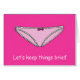A cartoon pair of ladies pink panties set against a bright pink background and the words 'Let's keep things brief'.