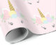 Unicorn gift wrap with adorable pastel unicorn face with gold horn and flowers on a pretty pastel pink background. You can change the background colour on this cute unicorn gift wrap.