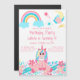 Pink Unicorn Rainbow Moon Stars Flowers Birthday Magnetic Invitation