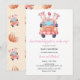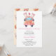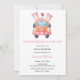 Adorable baby shower invitation featuring two adorable pink unicorns, and a festive creamsicle-coloured car. This invitation is perfect to celebrate the soon-to-be parents of twin girls. (c) KaliValy