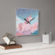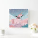 Pink Unicorn with Golden Horn – Pastel Clouds Square Wall Clock