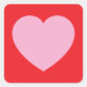 Pink Valentines Heart on Red Square Sticker