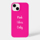 Share pink vibes with this fashionable hot pink phone case with modern white script with the words pink vibes only. Want to change it up? Easily change the text by personalising it. Or head to the editing tool to add a different colour! Express your own personal vibe! If you need help with personalisation, matching products, or for a custom design, message me via zazzle chat or email: ursuladawnmoon@gmail.com