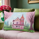 Pink Victorian House & Cherry Blossom Lumbar Cushion