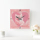 Pink Vintage Cute Kitten Heart Square Wall Clock