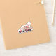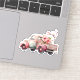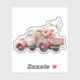 Contour sticker with a cute whimsical watercolor illustration. Peach and pink colours. Pickup truck with an old fashioned wood back/bed with cherry blossom flowers.