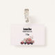 Name tag with a cute whimsical watercolor illustration. Peach and pink colours. Pickup truck with an old fashioned wood back/bed with cherry blossom flowers.