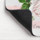 Beautiful pink vintage floral and green leaves on pink and white striped mousepad, personalised with your own text. Contact us for help with customisation or to request matching or coordinating products.