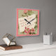 Clock with a vintage image of pink flowers and a Bible verse that says, "Psalm 27:1 The Lord is my light and my salvation---whom shall I fear?