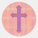 Pink Vintage Plaid Purple Faith Cross Stickers