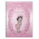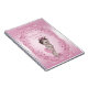 Girls' elegant pink vintage princess baby shower custom personalised guestbook notebook template with a beautiful vintage illustration of a cute and adorable baby girl with stylish pink Princess crown, sweet bunny rabbit slippers, pink diaper with ruffles and a pink bow in her hair on a pretty pink background with a classy, ornate swirls and flourishes border. Chic, trendy, glamourous, girly, feminine, fun, fashionable personalised girl Baby Shower guest book for your Princess themed showers. I have matching invites and other products in my store. If you need any assistance customising your product please contact me through my store and I will be happy to help. The beautiful frame is original artwork©delightful-doodles.com.