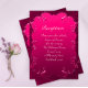 This stunning enclosure card is the perfect way to provide your guests with all the important details of your wedding reception. The dark pink card is highlighted with a vintage-inspired design featuring decorative scrolling flourishes embedded in a frame around the text (which is set out in an elegant typography font). The back of the card features personalised monograms for the bride and groom. This card is perfect for couples who are looking for an elegant and sophisticated way to share their wedding details with their guests. It is sure to make a lasting impression on everyone who receives it.