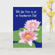 A pretty Grandparents Day card "From all of Us", with two pink water lilies and lilypads on a deep blue background, from a hand-painted watercolour design by Judy Adamson. You can add your own message to the inside of this card if you wish.