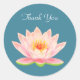 Pink Water Lily Flower on Blue Thank You Classic Round Sticker