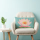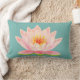 Pink Water Lily Flower on Teal Lumbar Cushion