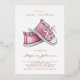 Celebrate your baby girl’s arrival with this delicate watercolor baby shower invitation featuring soft pink baby shoes and shimmering gold foil text. Personalize all text fields to include your event details, making this invitation perfect for modern, classic, or rustic baby showers. The pink palette with gold accents adds warmth and charm to your special day.
