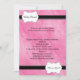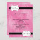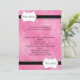 This precious baby shower invitation is a wonderful way to invite your guests to join you in celebrating your new arrival. This design has a pink background with a black border at the top and bottom. In the upper left corner there is a white scallop box that says Baby Shower. In the lower right corner there is a white scallop box that says It's a Girl. Your party details go in the centre and are completely customisable. Just add your Shower details and you are ready to go!