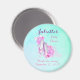 A fancy baby shower thank you magnet. A pretty watercolor design with a pair of pink ballet shoes surrounded by pink peony flowers, a cute bow and some watercolor paint splatters. Very soft elegant and girly for the ballet student and fan. Set on a soft ethereal aqua pastel green watercolor background. Personalise with your own details.