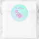 A thank you sticker with a pretty watercolor design featuring a pair of pink ballet shoes surrounded by pink peony flowers, a cute bow and some watercolor paint splatters. Very soft elegant and girly for the ballet student and fan. Set on a soft ethereal aqua pastel green watercolor background.