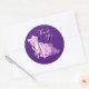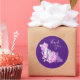 A thank you sticker with a pretty watercolor design featuring a pair of pink ballet shoes surrounded by pink peony flowers, a cute bow and some watercolor paint splatters. Very soft elegant and girly for the ballet student and fan. Set on a purple background.